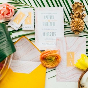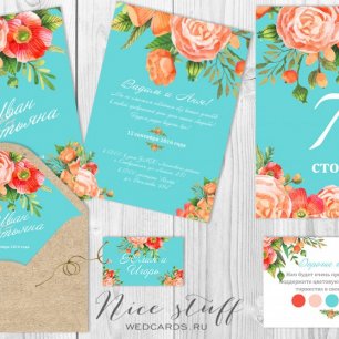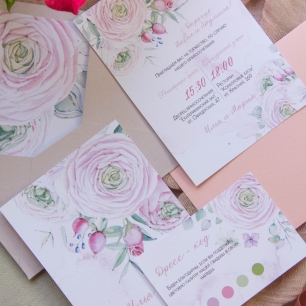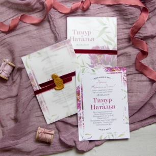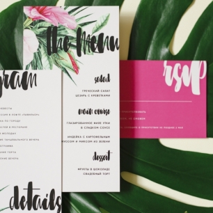 В первую очередь необходимо определиться с дизайном свадебных приглашений, ведь именно с них и начинается свадьба, и они – первое, что увидят ваши гости. Определитесь с форматом, какой цвет или сочетание оттенков вам нравятся, какими должны быть материалы и фактура. Рассылать пригласительные карточки лучше всего не позже чем за месяц-два до торжества. Также будет очень красиво, если в едином стиле и одной цветовой гамме с пригласительными будет выдержана и другая полиграфия, например, банкетные карточки и план рассадки на свадьбу.